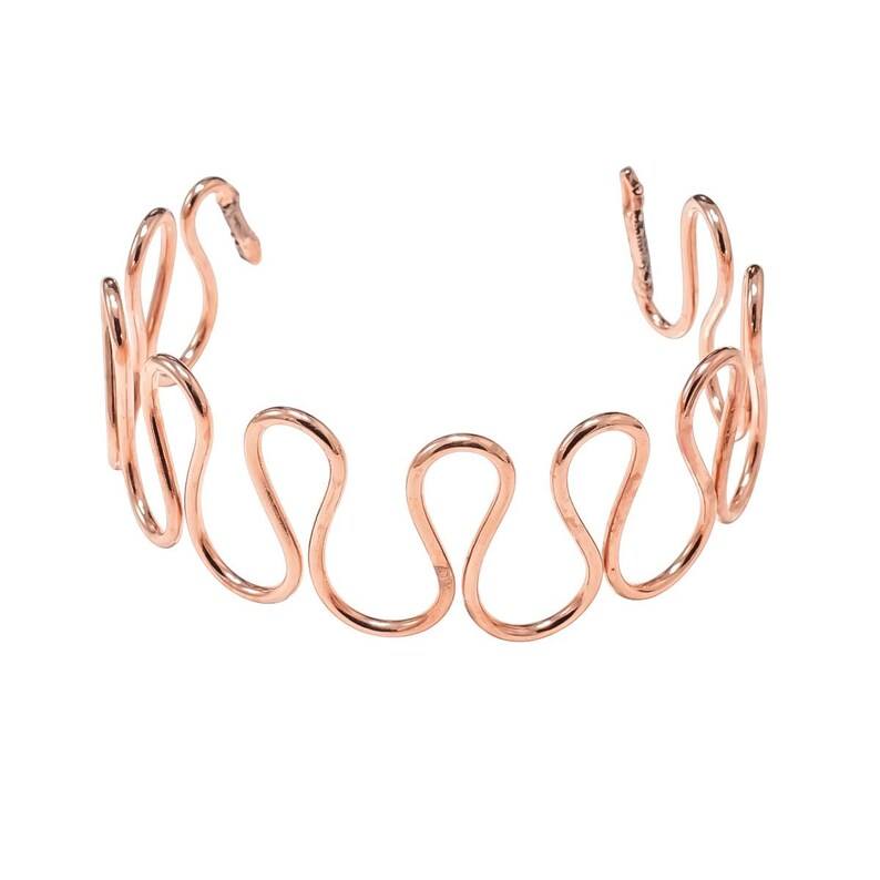 Pulsera de cobre puro sólido, joyería de diseño ondulado hecha a mano, unisex