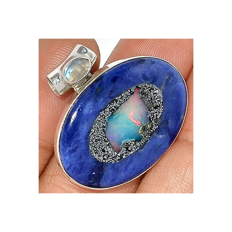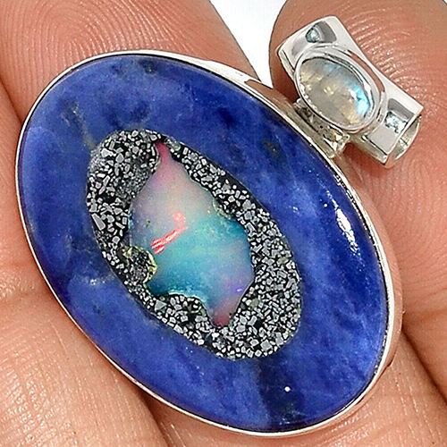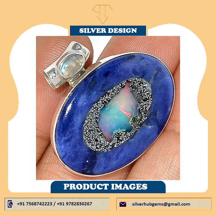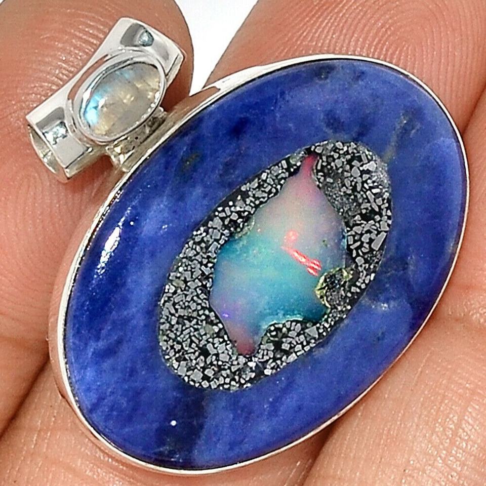 Colgante de Plata de Ley 925 con Ópalo Natural y Piedra Lunar, Colgante de Plata con Ópalo y Piedra Lunar para Mujer