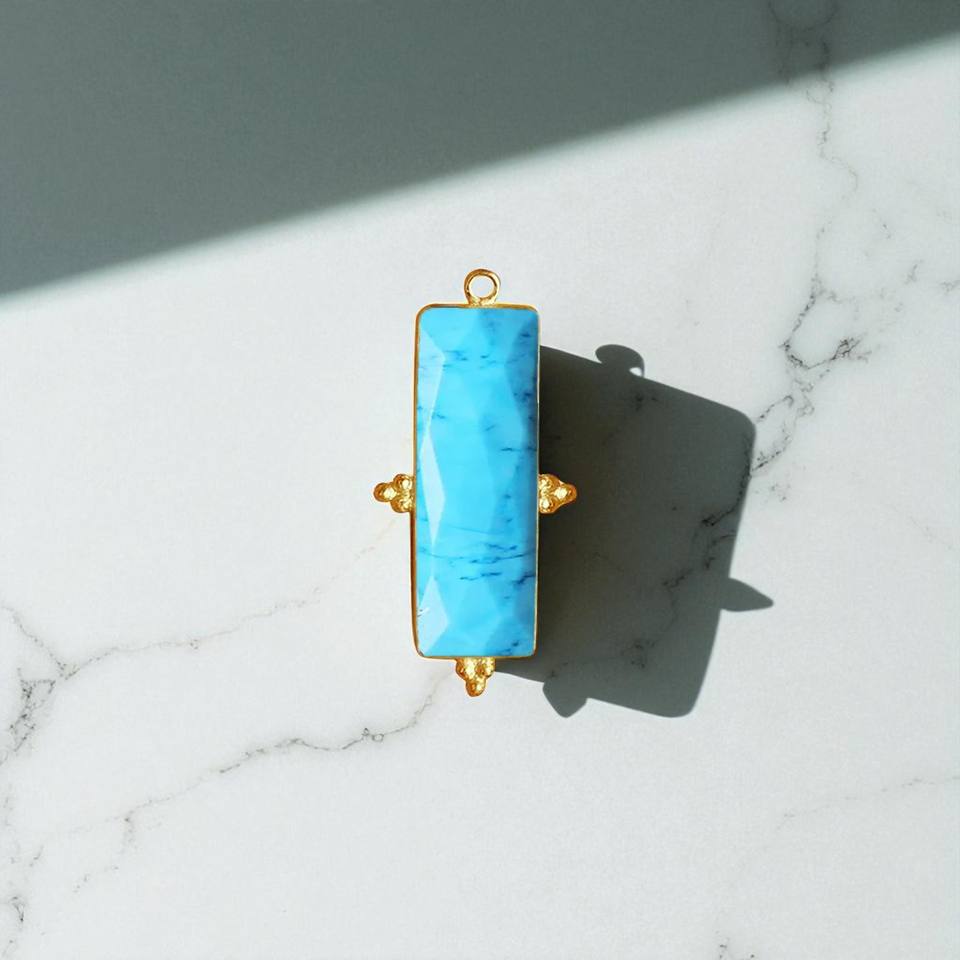 Colgante de piedras preciosas turquesa azul con forma de rectángulo de plata sólida para hacer joyas DIY