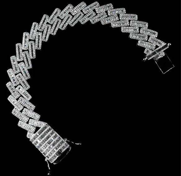 Pulsera y brazalete de eslabones cubanos Baguette de diamantes de 12mm de plata esterlina sólida Ideas de regalos de boda con joyería de moissanita