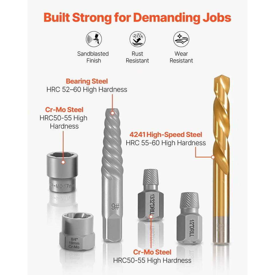 Estuche de Almacenamiento Sólido con Juego de 65 Brocas Extractoras de Tuercas y Pernos, Práctico Juego de Extractores de Tornillos