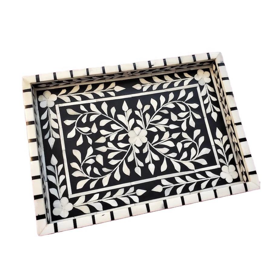 Bandeja decorativa de mesa de cocina para el hogar de estilo sólido, bandeja de perlas madre hecha a mano, bandeja de servicio de diseñador de lujo, excelente pulido