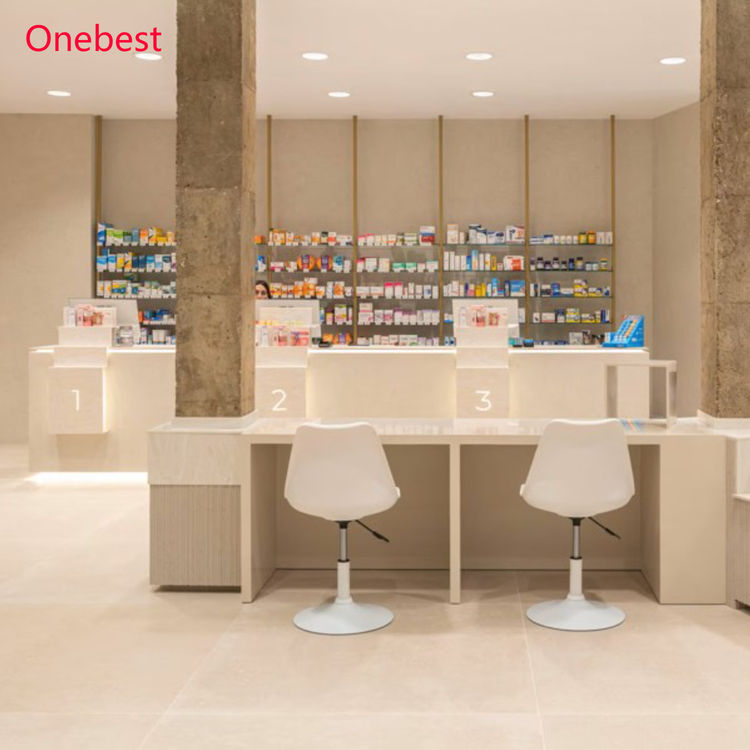 Mostrador de Caja para Farmacia con Superficie Sólida e Iluminación LED, Mostrador de Recepción Moderno para Clínica Dental para 3 Personas