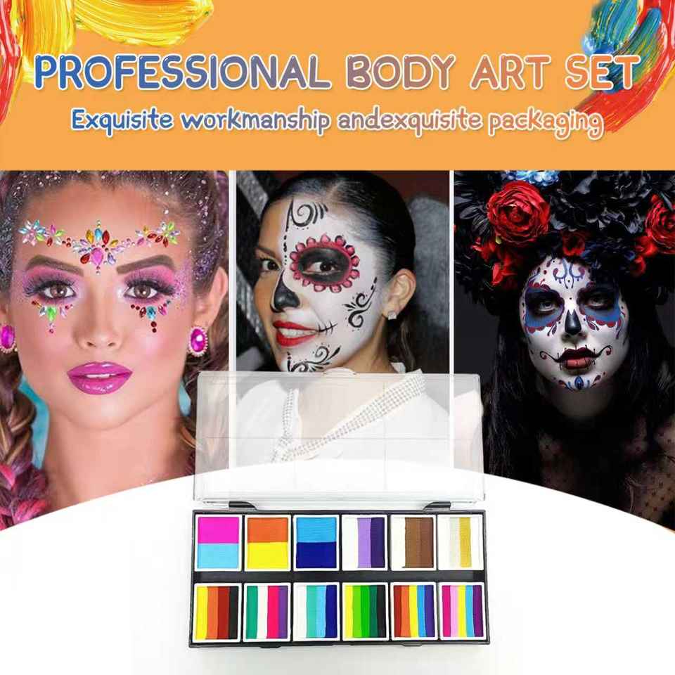 Color:3 brushes 12 colors 4 Glitters stencils 1 glue 2 sponges
