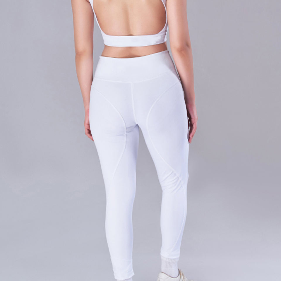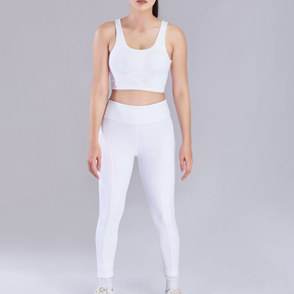 Conjunto Deportivo de 2 Piezas en Color Blanco Sólido, Top Deportivo y Leggings para Yoga, Ropa Deportiva para Mujer, Conjunto de Yoga para Gimnasio y Fitness