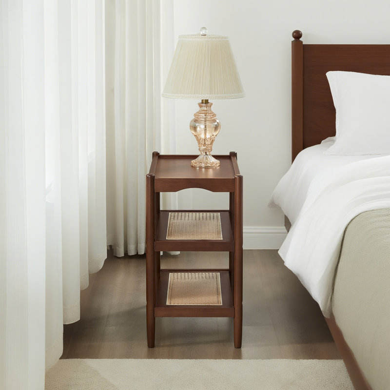 Mesa Auxiliar de Almacenamiento de 3 niveles de madera maciza Mesita de noche versátil con estantes prácticos