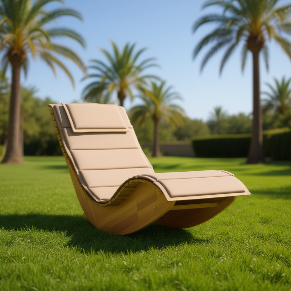 Tumbona de Madera Maciza de Acacia con Cojín, Muebles de Relajación para Exteriores, Diseño Moderno, Estilo Contemporáneo