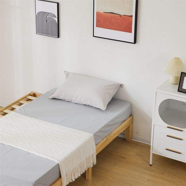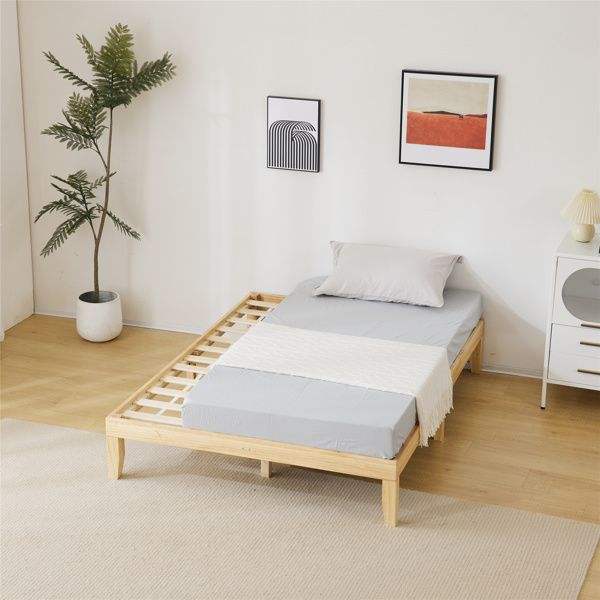 Base de Cama de Madera Maciza Tamaño Completo 197.2*136*30.5cm Color Natural