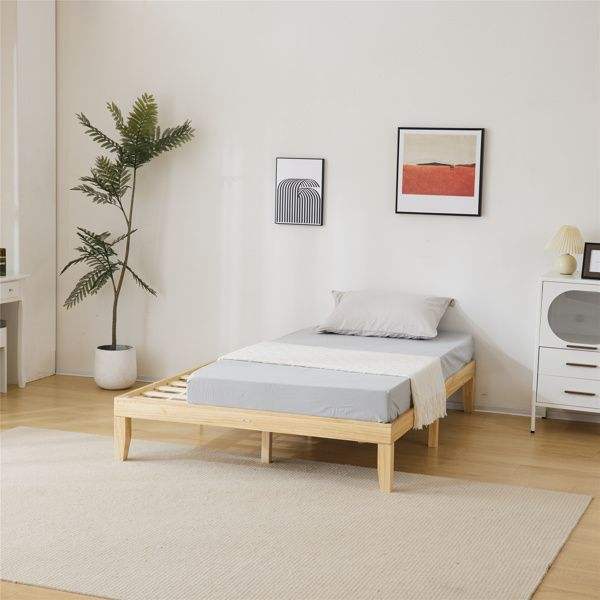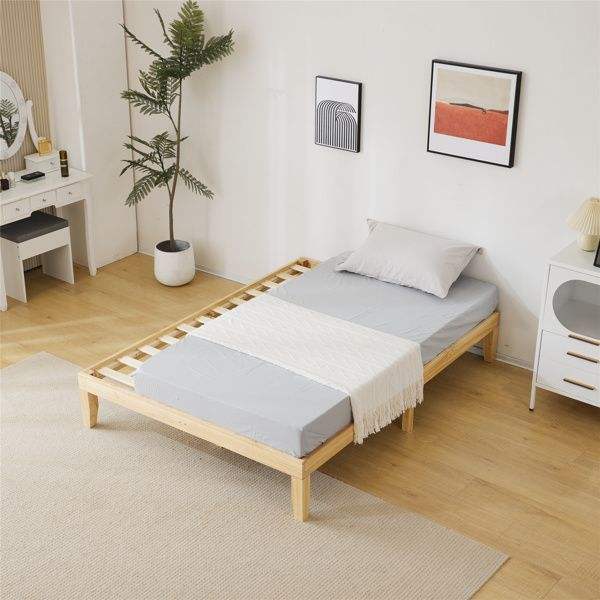 Base de Cama de Madera Maciza Tamaño Completo 197.2*136*30.5cm Color Natural