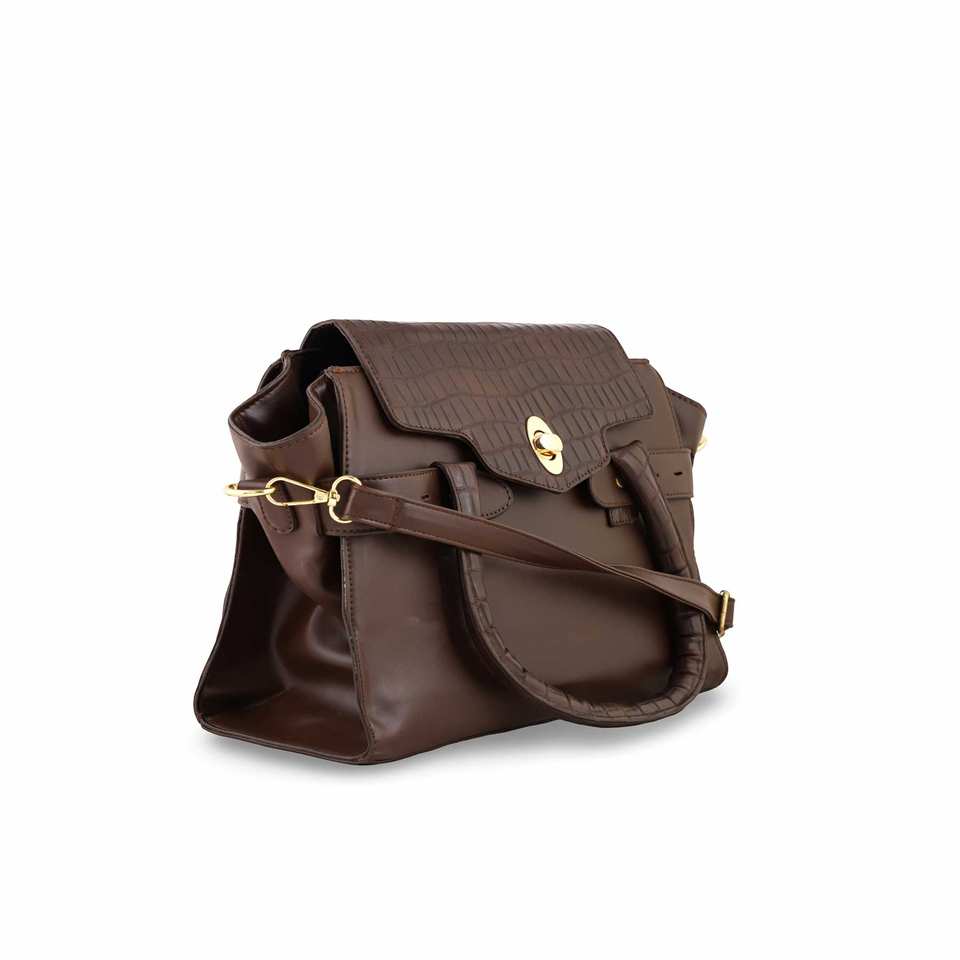 Bolso de mano formal de café de tablero de madera maciza P54356
