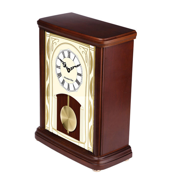 Solid Wood Clock European Style Rectangle Westminster Chime Living Room Decorative Musical Clock