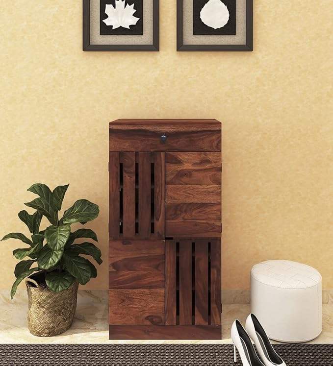 Zapatero de Madera Maciza de Diseño para Entradas, Hogar, Oficina, Mueble Zapatero con 5 Estantes, 1 Cajón y Puerta de Madera Maciza, Teca