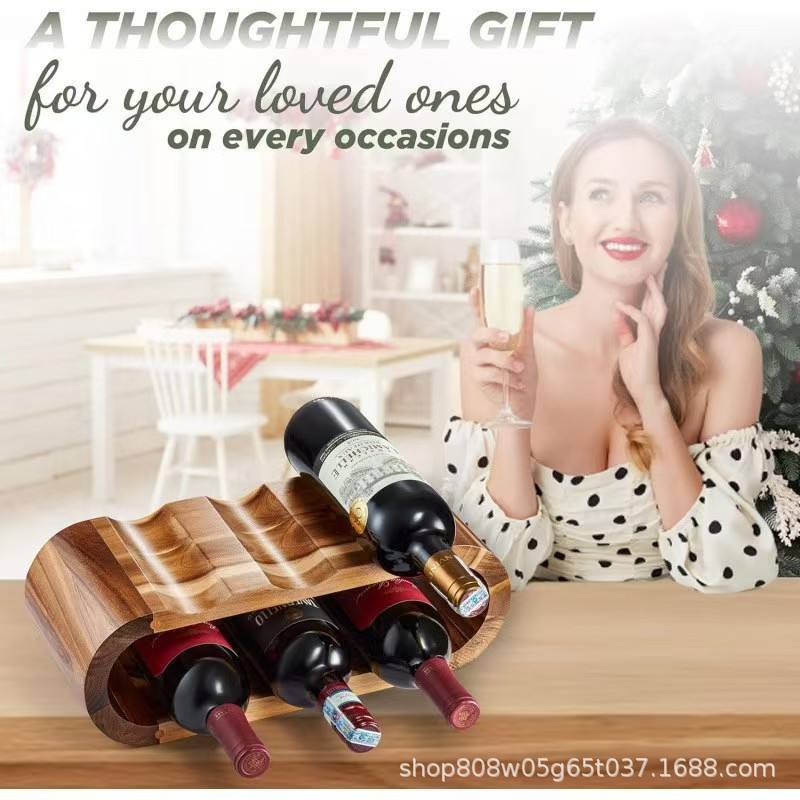 Estante para botellas de vino de madera maciza de 3 niveles para uso en el hogar, sala de estar, color retro.