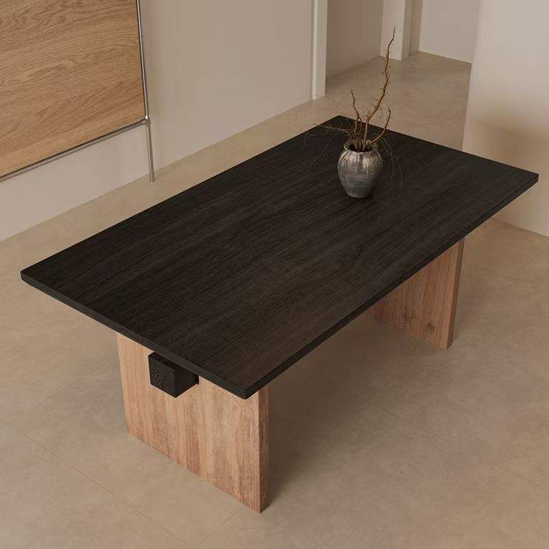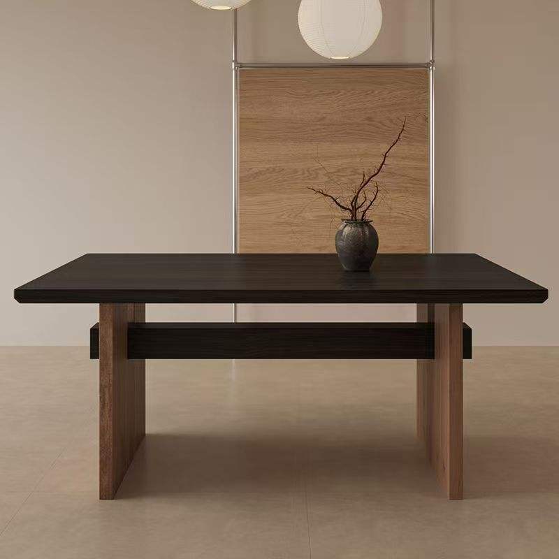 Mesa de Comedor Rectangular de Madera Maciza Negra Multiusos para el Hogar y el Comedor
