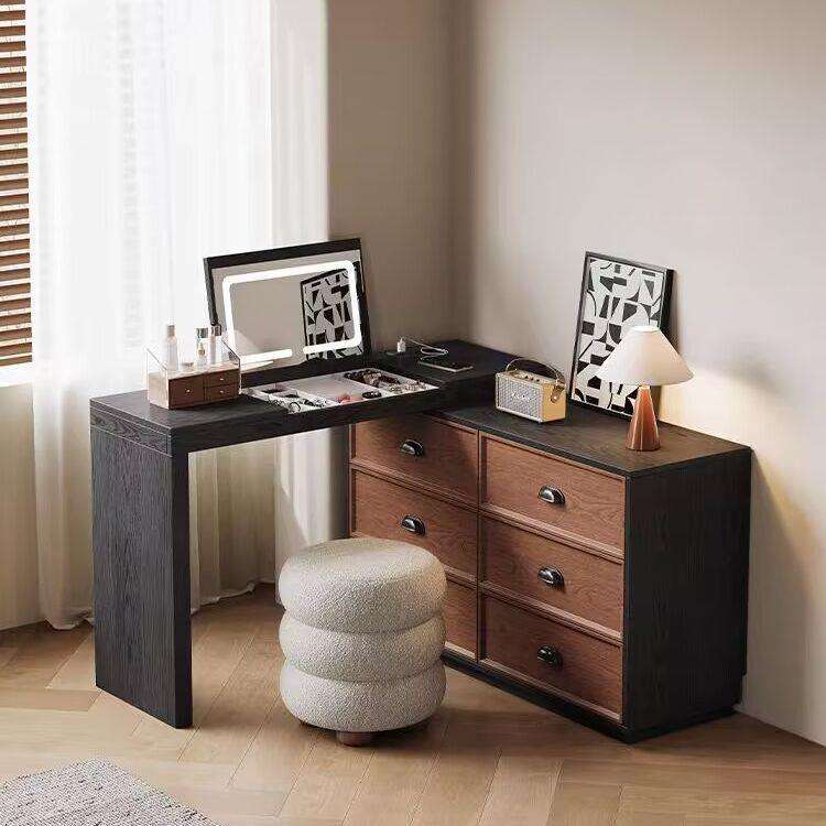 Tocador de madera maciza con cajonera extensible, mueble de almacenamiento para dormitorio, diseño en madera de roble