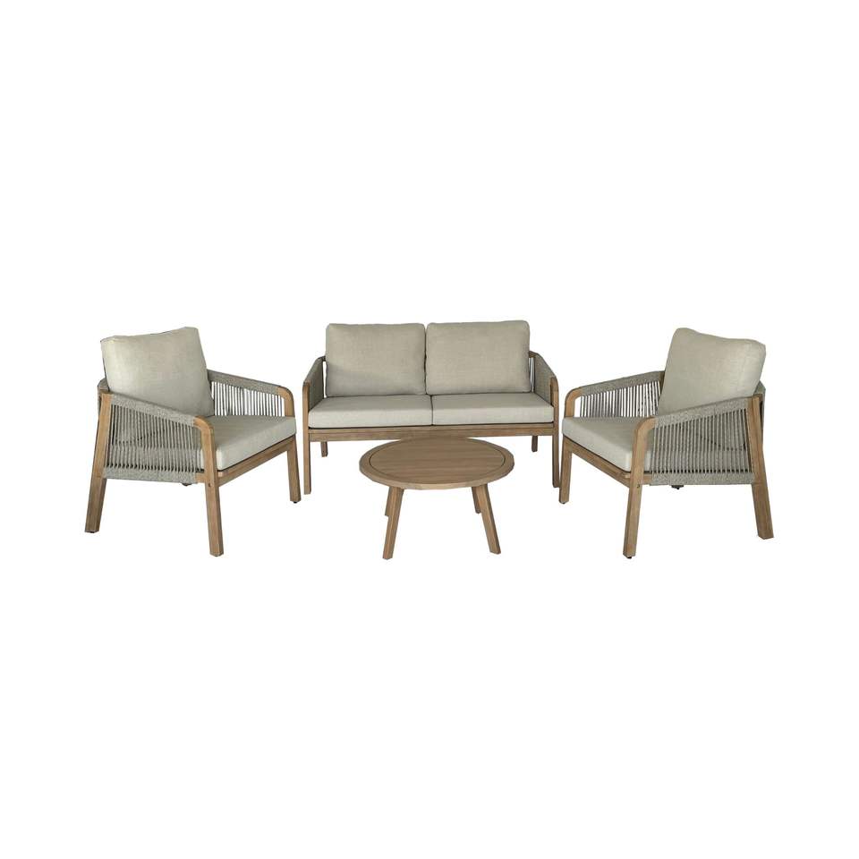 Juego de Sofá de Madera Maciza Ecológico con Mesa de Centro para Uso en Exteriores, Color y Logotipo Personalizables, Alta Calidad