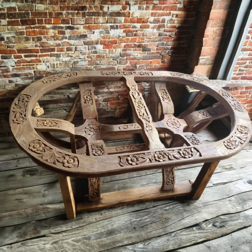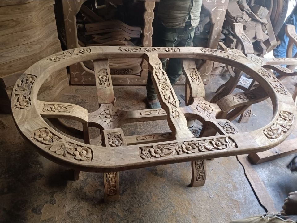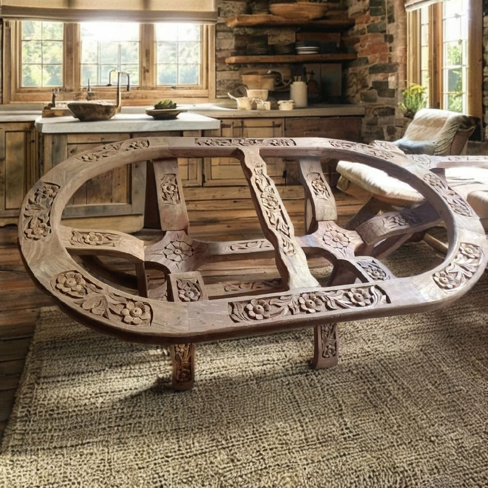 Juego de Mesa de Comedor Extensible de Madera Maciza con Sillas, Forma Ovalada, Diseño Industrial, Muebles de Comedor con Detalles Tallados