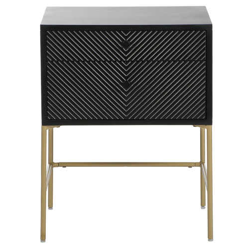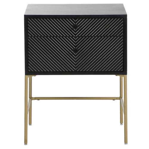 Nombre del producto:Mesita de noche negra con cajón tallado