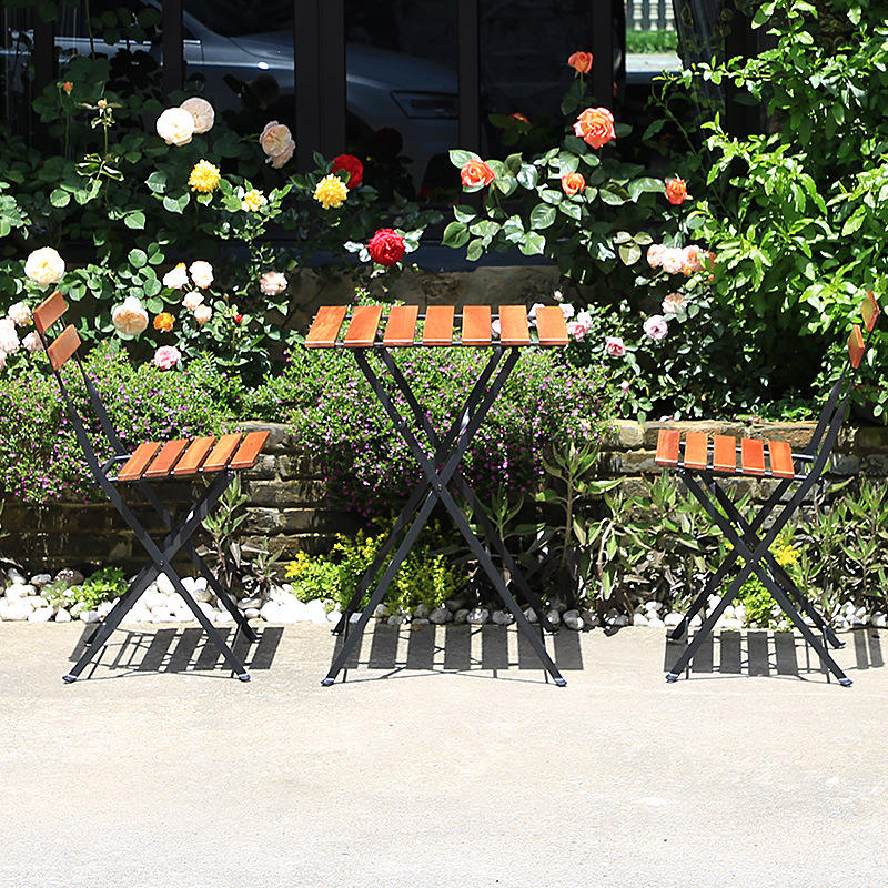 Conjunto de Muebles de Jardín de Tres Piezas de Madera Maciza, Mesa de Centro Plegable y Silla, para Balcón Pequeño, Patio Exterior, Terraza de Ocio