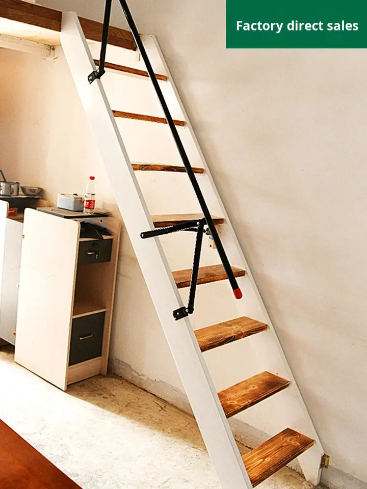 Escalera Plegable de Madera Maciza para Uso Doméstico, Simple, Montada en la Pared, para Altillo, Ático, Automóvil, Almacén, Retráctil, Fácil de Personalizar, Carga de 150 kg, China