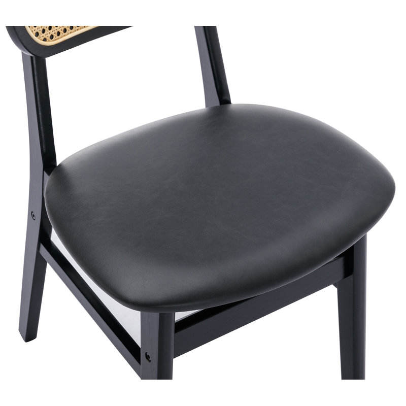 Silla de comedor con marco de madera maciza, Juego de 2 sillas laterales traseras de ratán tapizadas de piel sintética para sala de estar