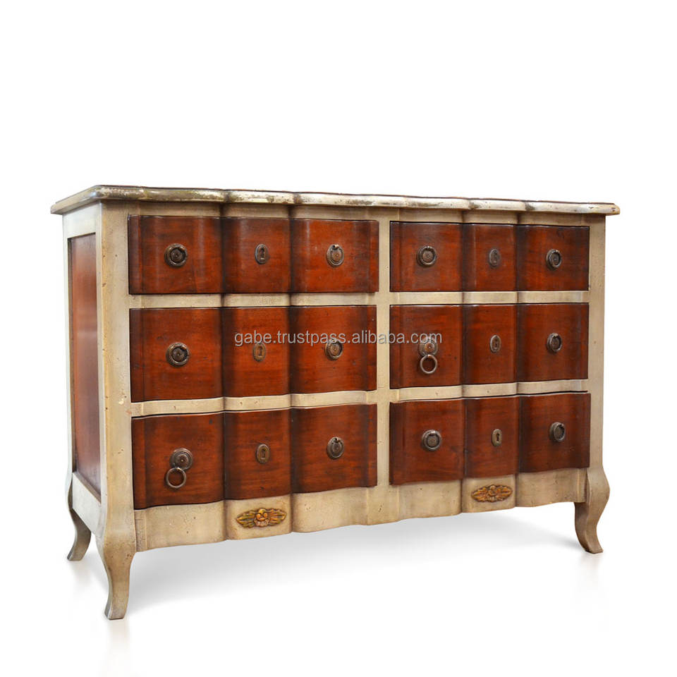 Gabinetes de salón de estilo francés de madera maciza Cofre de 6 cajones con 2 tonos de color para uso doméstico