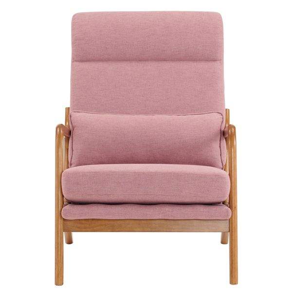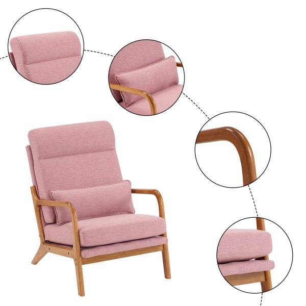 Silla de Madera Maciza con Respaldo Alto y Reposabrazos, con Estructura de Hierro y Tapicería de Lino, Silla de Ocio Interior en Color Rosa para Sala de Estar