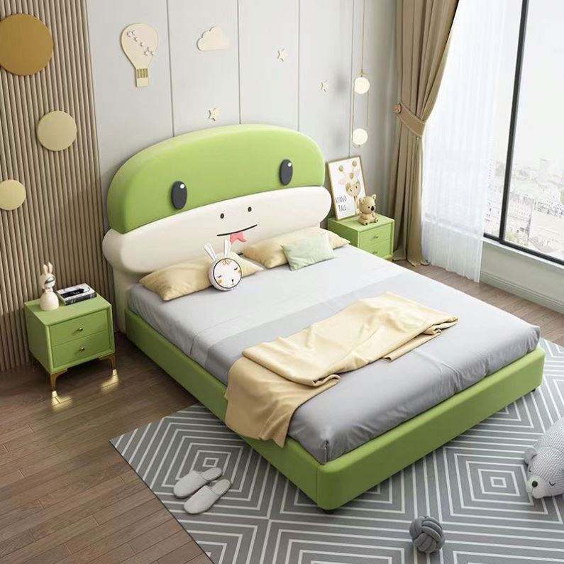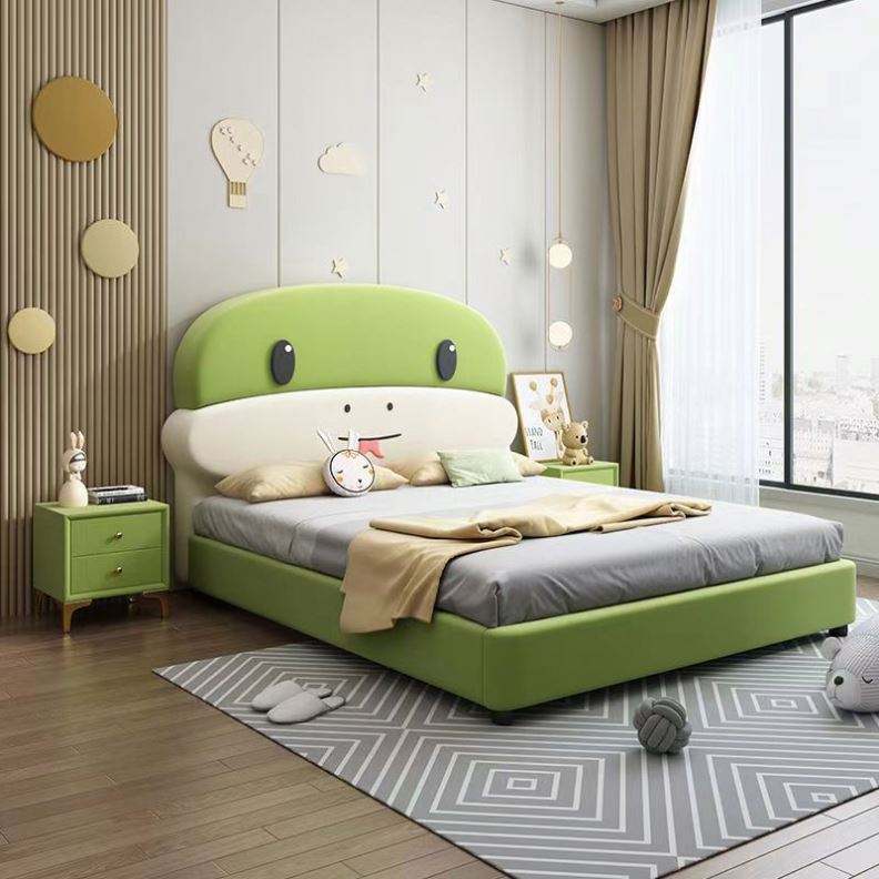 Cama de madera maciza para niños, cama individual con diseño de serpiente minimalista moderno para niños y niñas, dormitorio infantil