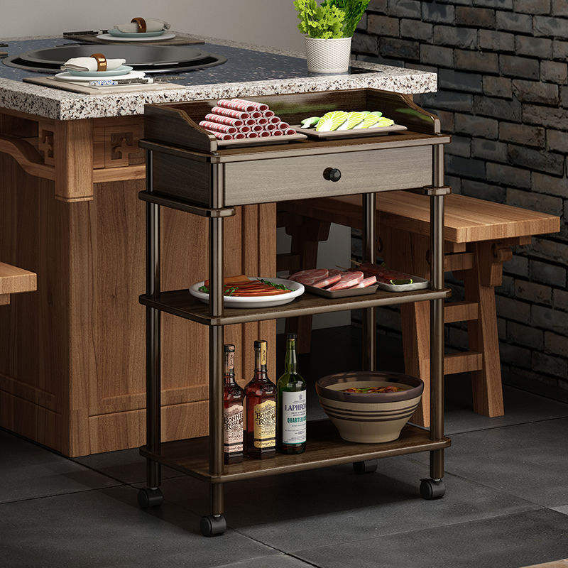 Carrito de Cocina de Madera Maciza con Cajón y Estantes, Mueble de Almacenamiento Móvil para Uso en el Hogar o Restaurante