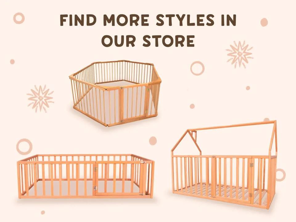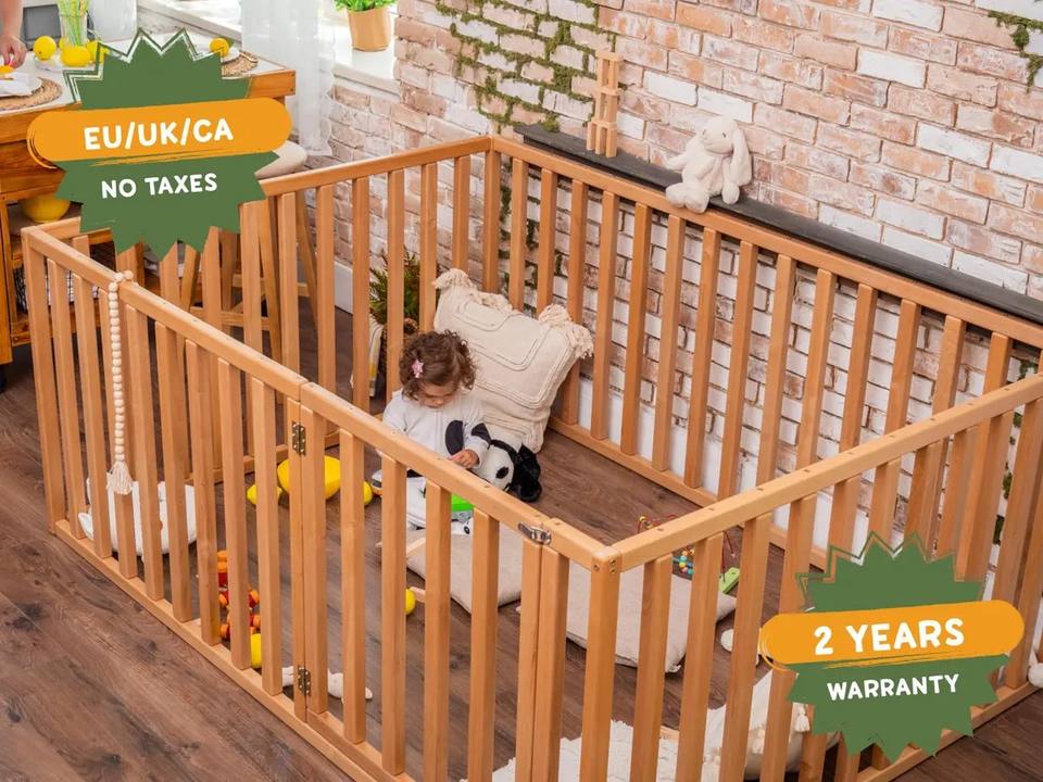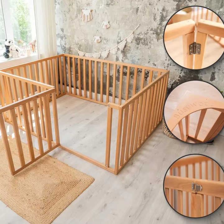 Cama de madera maciza para guardería y juego de bolígrafo ecológico clásico para niños pequeños, muebles clásicos ecológicos para decoración de guardería