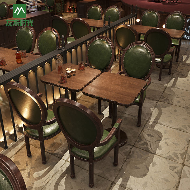 Juego de mesa y silla de Bar americano Retro de madera maciza para restaurante, taberna o cafetería, muebles de comedor