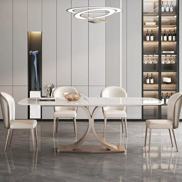 Mesa de Comedor Cuadrada de Estilo Crema con Placa de Roca de Madera Maciza para el Hogar