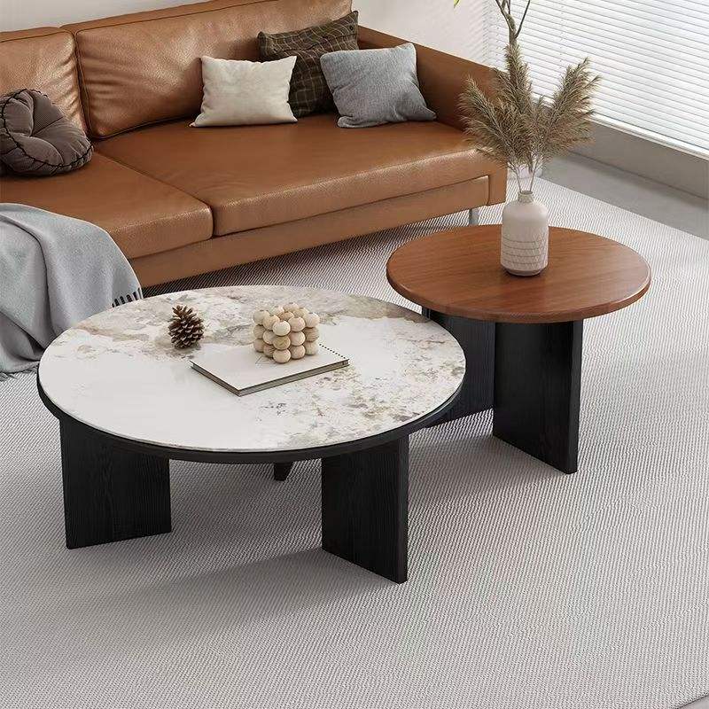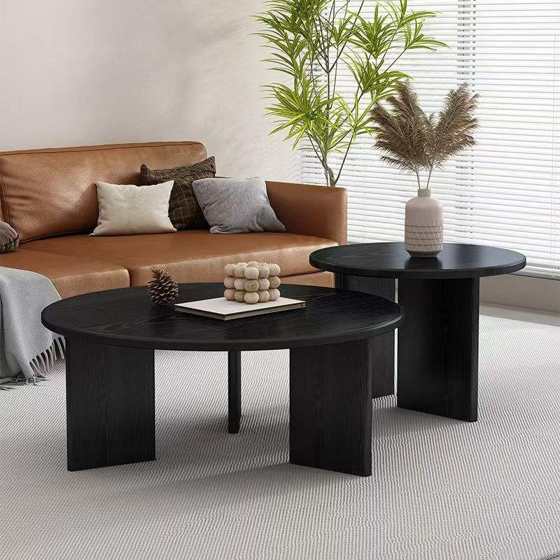 Mesa de Centro Redonda de Madera Maciza Color Nogal, Diseño Moderno Minimalista, Ideal para Apartamentos Pequeños