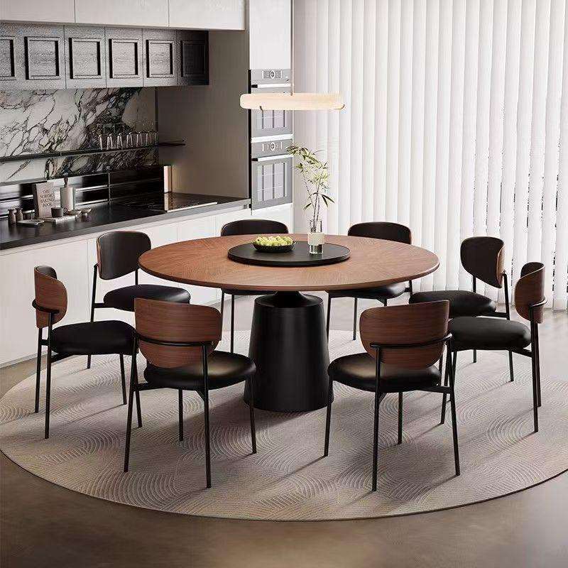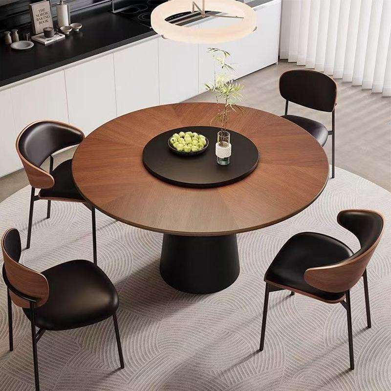 Solid Wood Round Dining Table Set 8 Piece With Turntable For Home And Small Apartments