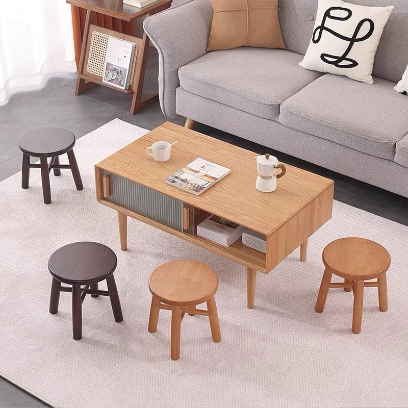 Taburete Redondo de Madera Maciza Color Nogal, Color Madera Natural, Diseño Minimalista, Duradero, para Uso Doméstico, Sala de Estar, Entrada