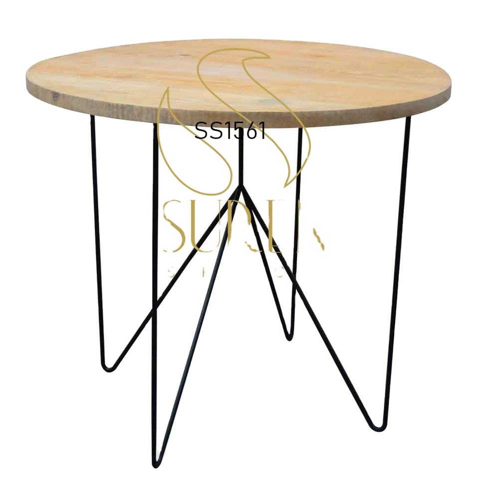 Mesa redonda de madera maciza con patas de hierro para comedor o sala de estar Diseño de estilo restaurante para hoteles o casas Tapa de madera India