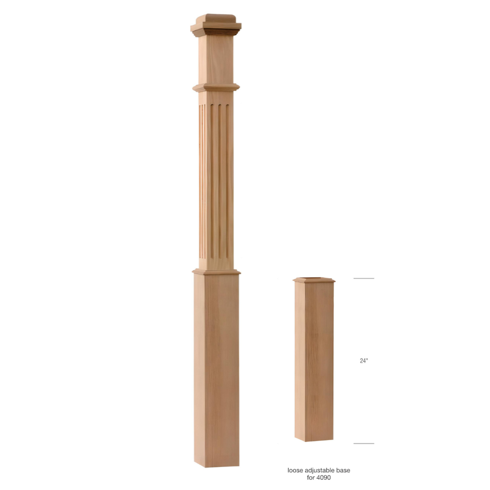 Caja de panel estriado de madera maciza de caucho Newel 55 "con manga ajustable Pirámide intercambiable y tapas planas incluidas