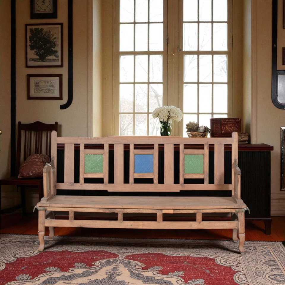 Banco de Madera Sólida Rústico, Tradicional y Moderno para Exteriores, para Patio, Jardín, Parque, Comedor, Escuela, Hogar, con Diseño de Tela