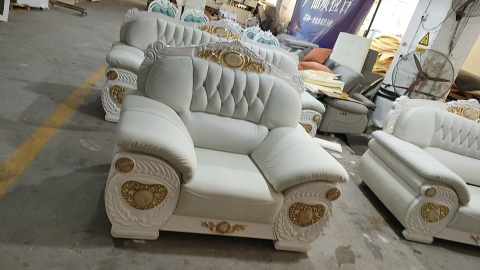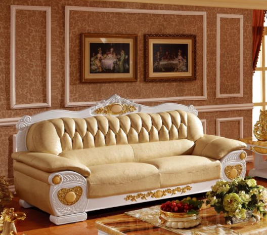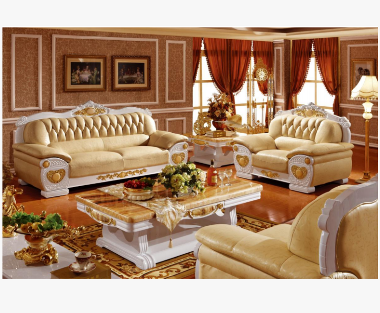 Juego de Sofás Seccionales de Madera Sólida, Sofá de Cuero Clásico, Muebles de Lujo para Sala de Estar, Sofá para Villa, Casa, Apartamento u Oficina