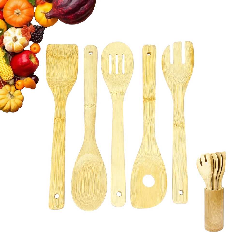 Juego de cucharas de madera maciza para cocinar con espátula, cuchara para servir y cuchara volteadora para uso en la cocina