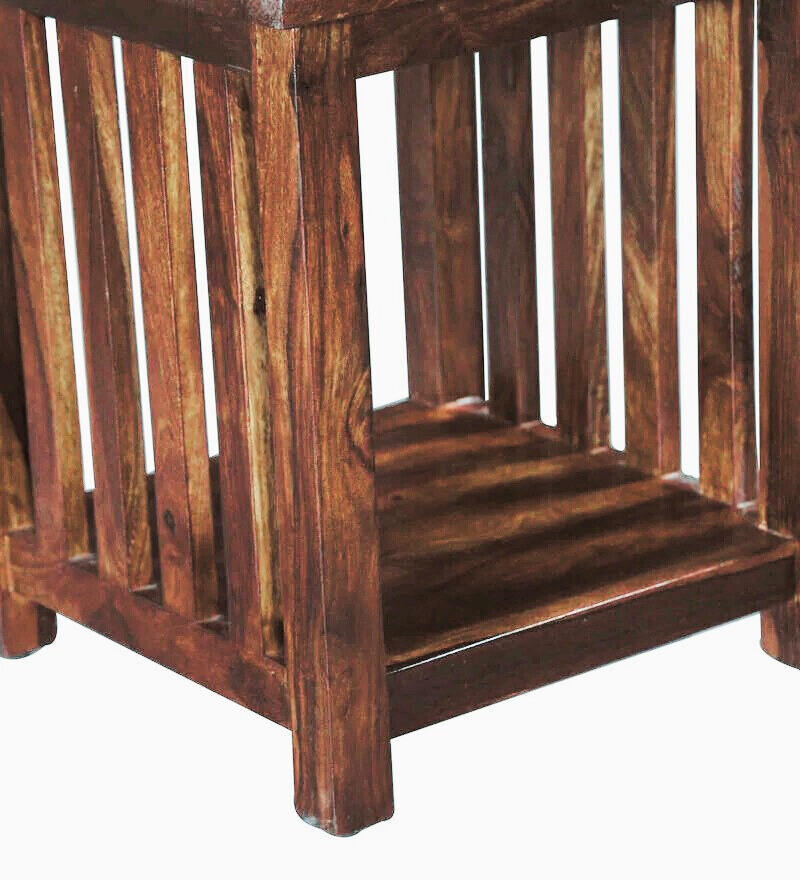 Mesa auxiliar cuadrada de madera maciza, estante abierto con pata de Listón, acabado marrón claro, ensamblado moderno para sala de estar, muebles de dormitorio, apartamento