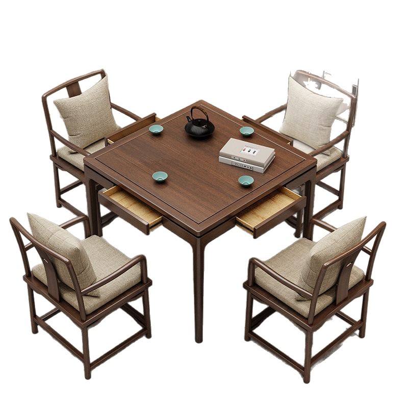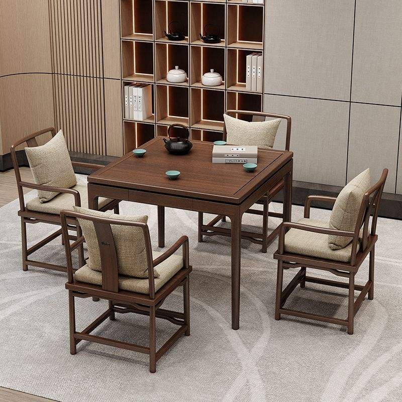 Mesa Cuadrada de Madera Maciza con Sillas, Juego de 5 Piezas, Muebles de Comedor Convertibles, Estilo Chino Nuevo