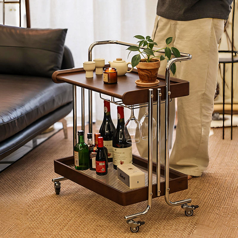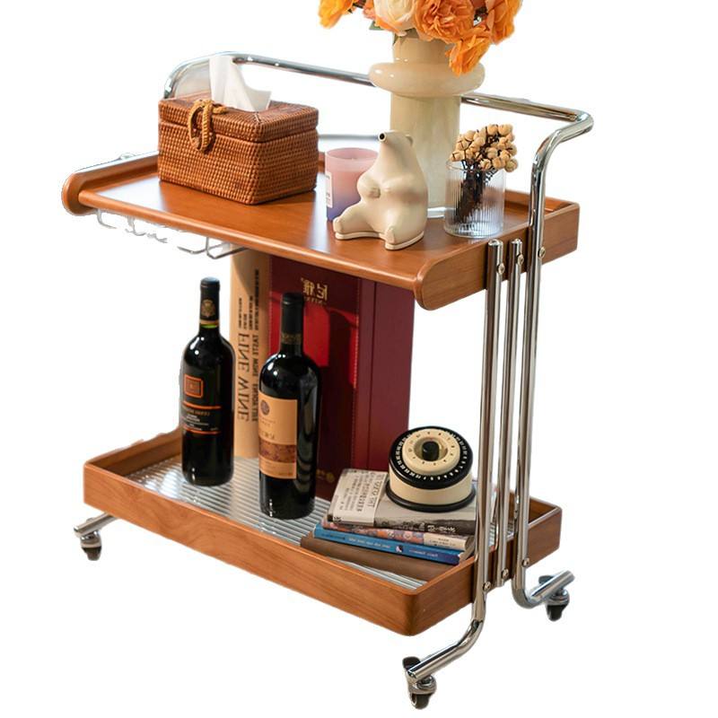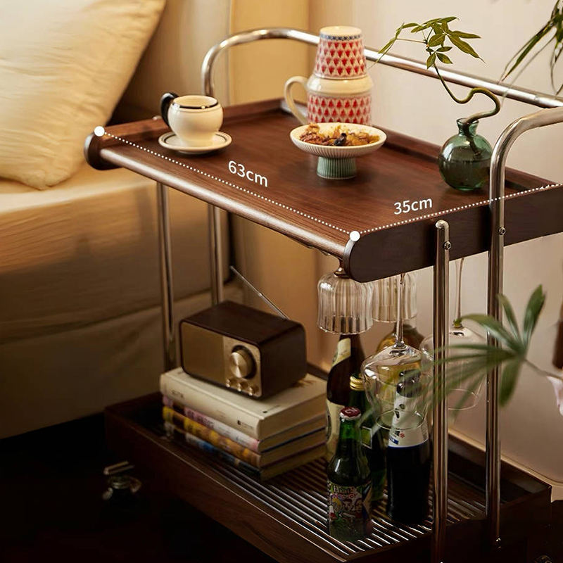 Carrito de almacenamiento de madera maciza, color nogal, mesa auxiliar móvil con ruedas para sala de estar, dormitorio, organizador de oficina, fácil de usar