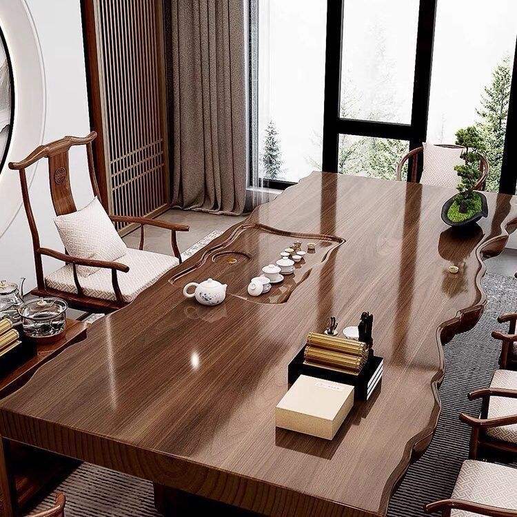 Juego de mesa y sillas de madera maciza, muebles de sala de estar de estilo chino, juego de preparación de té hecho a mano inspirado en el Zen