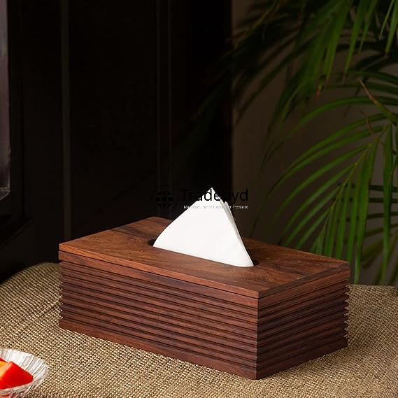 Caja de Pañuelos y Soporte de Madera Maciza Premium Hechos a Mano con Patrón Floral Grabado para Decoración de Mesa Moderna Tradebyd