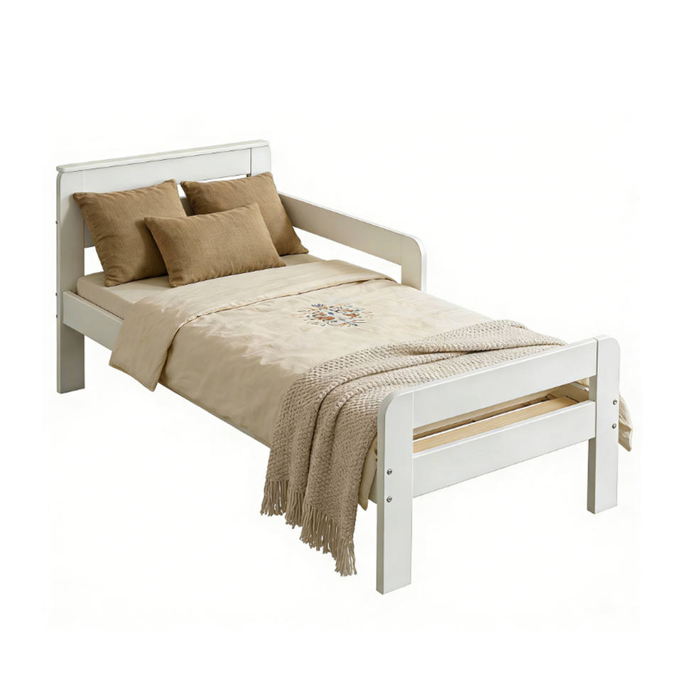 Cama infantil de madera maciza con barandillas, blanca, para niños, estilo Montessori, cama doble para niños, cama infantil de madera para el suelo.