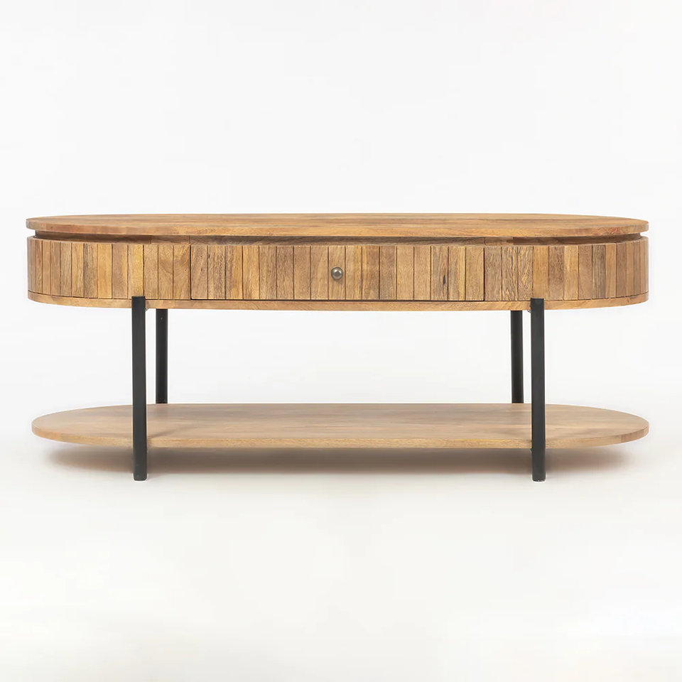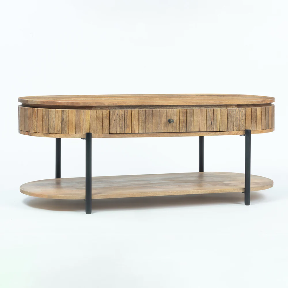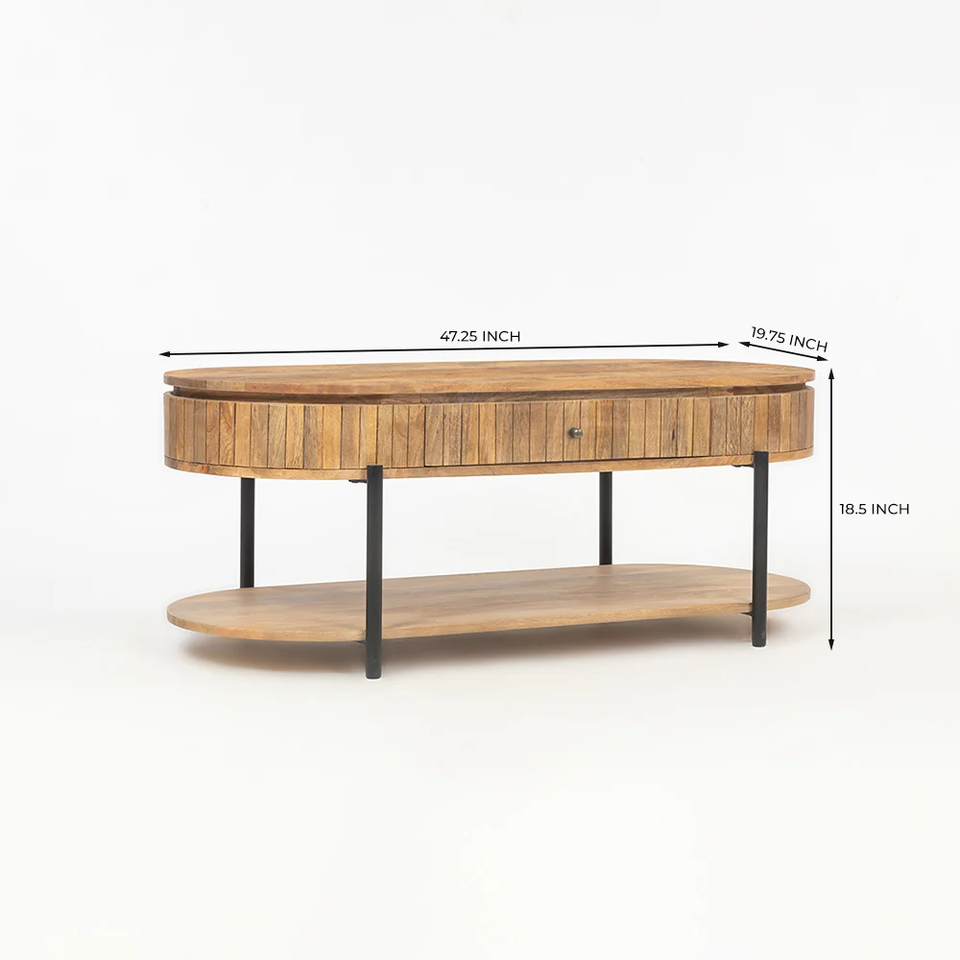 Mesa de Centro Moderna Extensible con Tapa de Madera Maciza y Base de Hierro, con Espacio para Guardar Libros y Cajones de Almacenamiento, para Muebles de Hogar y Hotel