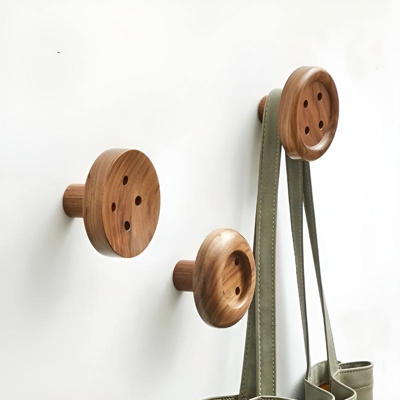 Gancho de Pared con Forma de Botón de Madera Maciza, Soporte de Almacenamiento Creativo para Botones, Organizador Decorativo para Manualidades