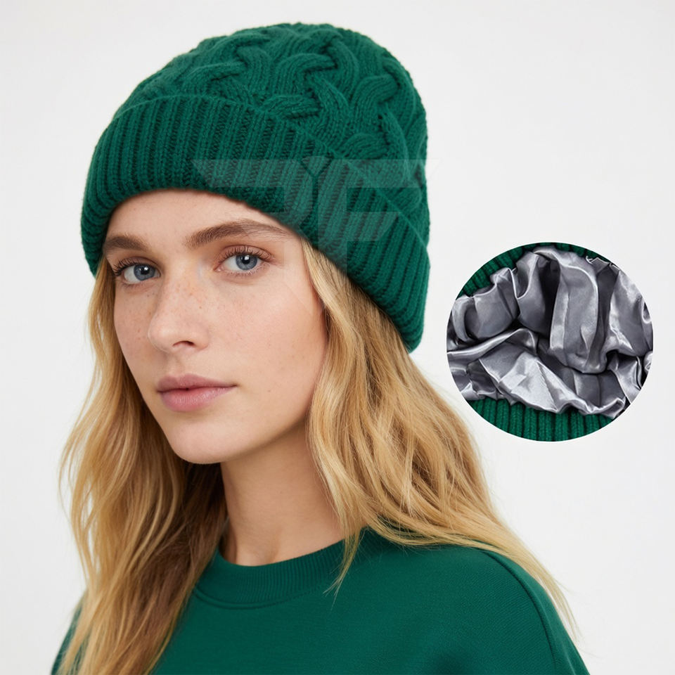 Gorro de Lana de Cachemira de Color Sólido para Otoño e Invierno, Forrado de Satén, Tejido Grueso, para el Frío