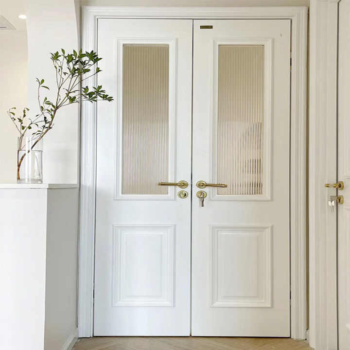 Puerta de madera maciza compuesta moderna para cocina Puerta doble francesa con armario para uso en dormitorio